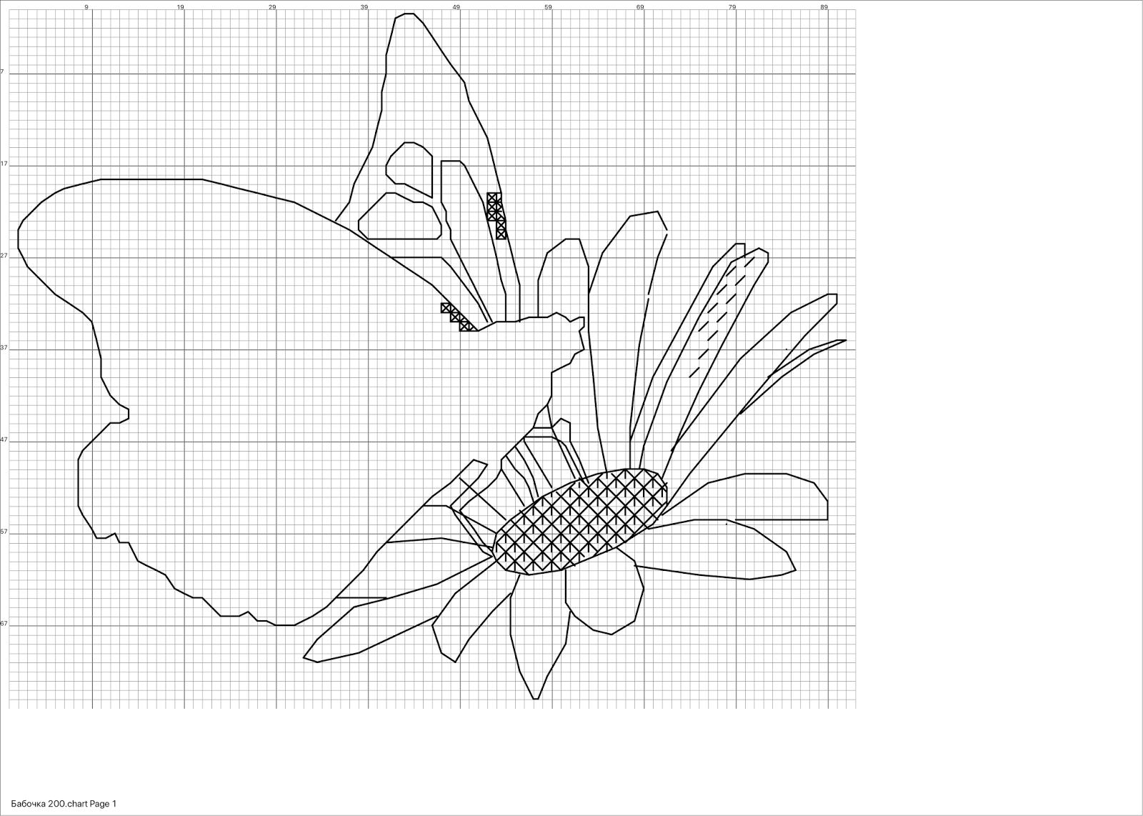 Я выбрала бабочку. Нашла несколько вариантов. От одной фотографии взяла саму бабочку, от другой — цветок, на котором она сидит. Выбрала несколько узоров (пока ещё не со всеми разобралась) и стала намечать контуры будущей вышивки.