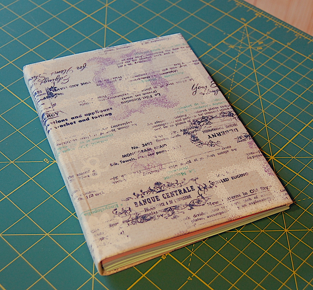 Ткань — дорогущий по моим меркам хлопок для пэчворка. Я хотела сшить из него чехол для электронной книги, но книга и сама по себе оказалась неубиваемой, чехол только занимал бы лишнее место и пачкался. Так что я пустила кусочек на обложку для тетрадки.