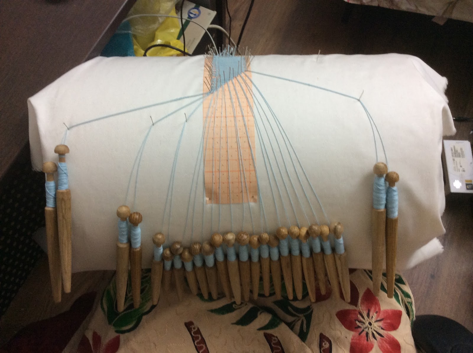 | Первые две закладки на коклюшках |