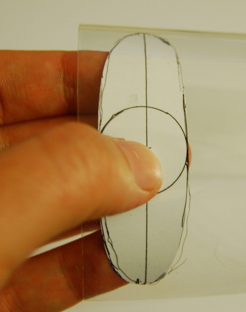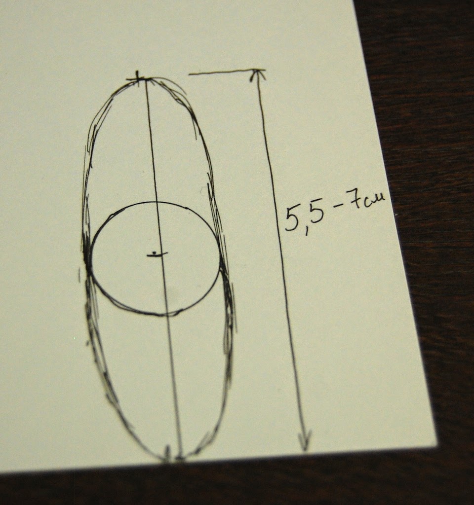 Сперва создадим выкройку стенки челнока. На листочке бумаги обведем шпульку…